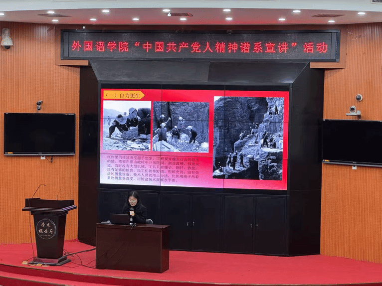 悟精神谱系真谛立复兴时代壮志。为习宣传解读党的二十届四中全会精神,深化青年学子对中国共产党人精神谱系的理解,厚植爱党爱国情怀,引导青年以精神伟力赋能成长2025年12月9日,外国语学院在文质楼A105开展“中国共产党人精神谱系”宣讲活动,共有师生百余人参加。