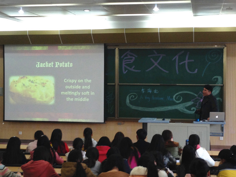 四月七号下午一点五十分,综合楼B114召开了主题为英国饮食文化的讲座。主讲人为李海龙老师。李老师结合自己在英国生活的经验给我们精彩讲述了英国独特的饮食文化。
