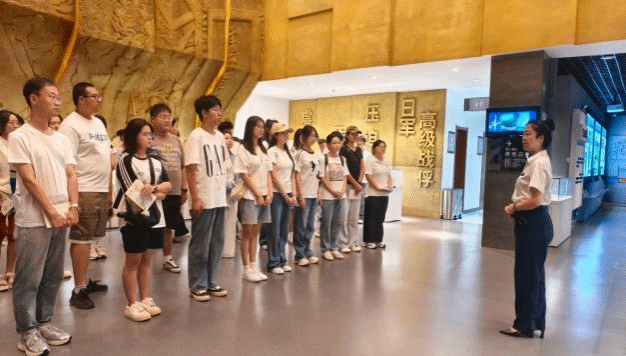 为深入学习贯彻习近平新时代中国特色社会主义思想,纪念中国人民抗日战争暨世界反法西斯战争胜利80周年,引导广大青年学子赓续红色精神血脉、坚定理想信念,外国语学院团总支组织20余名学生积极参加“爱国强军谱新篇”群众性主题实践活动,循着历史的脉络探访红色印记,紧跟时代的步伐,在一场沉浸式的“行走课堂”中,收获知识与成长。