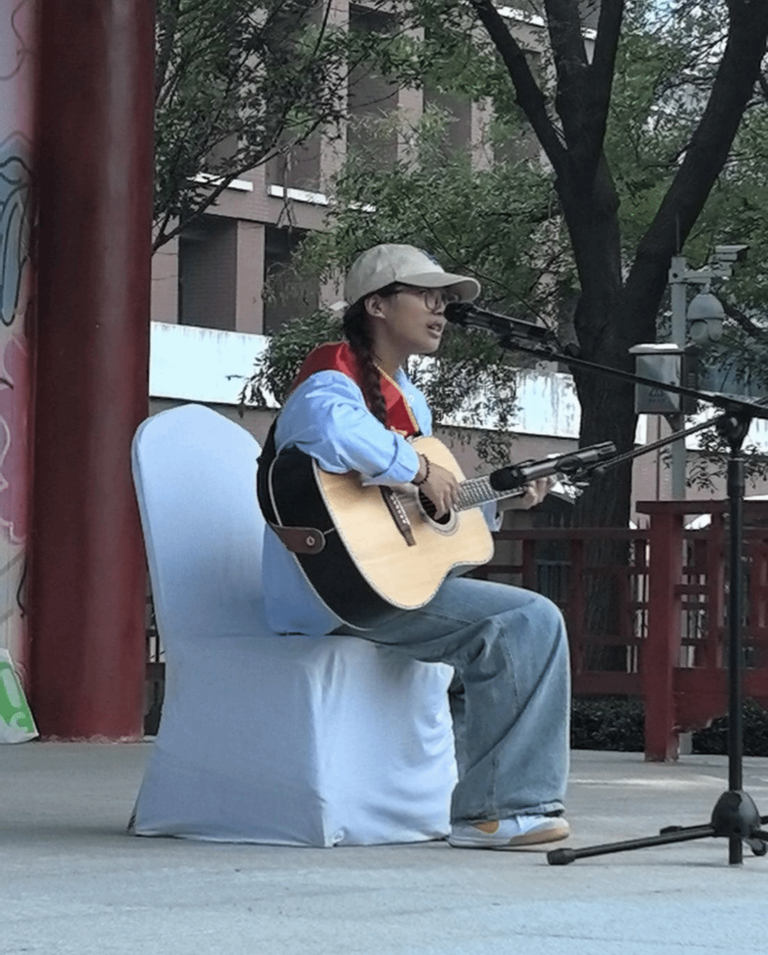 温柔与深情交织的歌曲《我只在乎你》将细腻情感与经典旋律相融,志愿者饱含温情的演唱传递出真挚心意,让老人们沉浸其中,不时报以会心微笑。