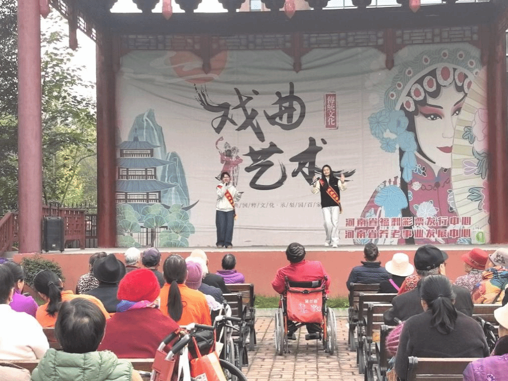 演出在极具地方特色的黄梅戏舞台中拉开帷幕,演唱者将传统唱腔与情感完美融合,演绎得绘声绘色,老人们听得入神,不时露出欣慰笑容。