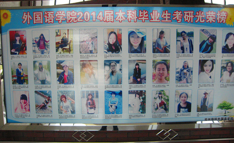 我校首届英语专业毕业生在全国研究生考试中取得良好成绩。据初步统计,在2014年硕士研究生初试中,达到国家录取分数线的33人,其全部为本专业考研,占该专业毕业生人数的15.7%,截至目前,顺利通过复试并被高校录取29人,占该专业毕业生人数的13.8%。其中李国英、李媛、邵冉、杨寒淋分别被英国诺丁汉大学、伯明翰大学、爱丁堡大学及香港城市大学录取;杨明明、罗茜、刘聪颖、刘乔屹、高欢欢等分别被天津外国语大学、四川外国语大学、北京交通大学、中南民族大学和东北师范大学等全国知名的211工程重点高校录取。更值得骄傲的是,作为本专业考研考二外的英语专业的学生,她们的二外法语成绩普遍都在85分以上。
