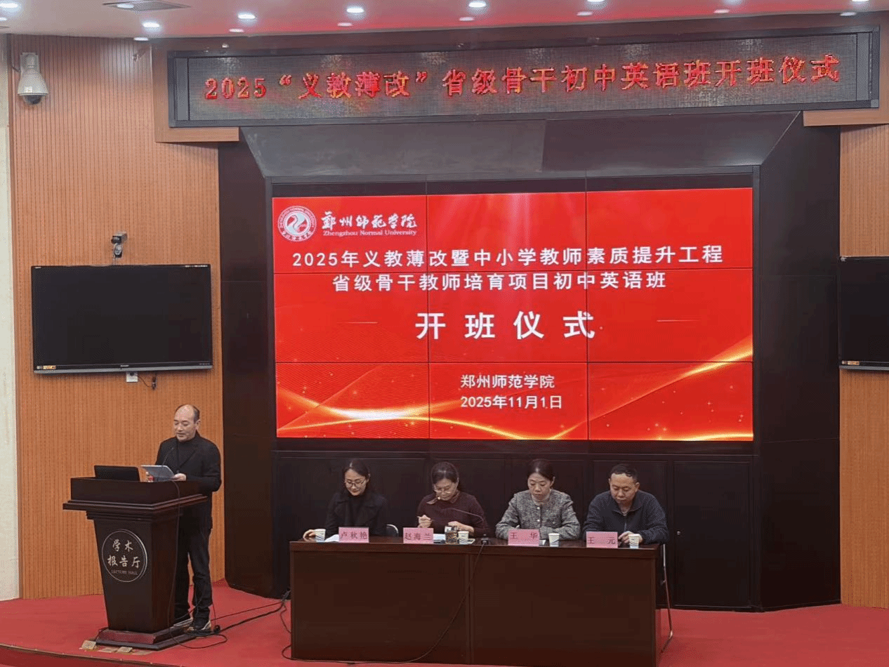 2025年11月1日,由郑州师范学院外国语学院承办的2025年义务教育师资薄弱环节改善暨中小学教师素质提升工程省级骨干教师培育项目初中英语班顺利开班。