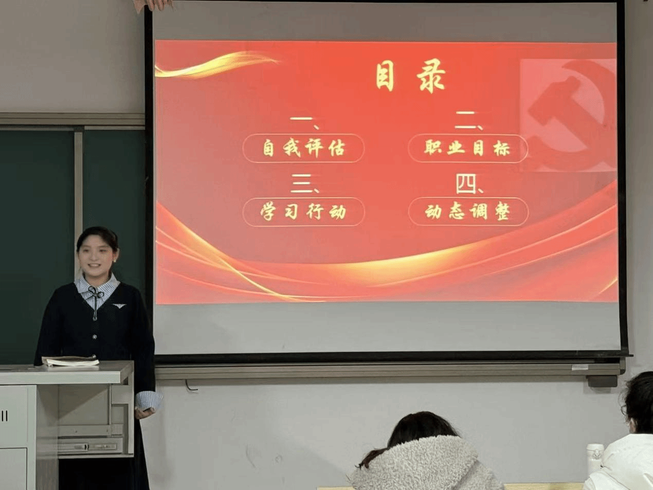 选手们围绕自我认知、职业分析、目标确立、路径设计及行动计划五大核心模块,结合精心制作的PPT,从容自信、条理清晰地向评委和观众展示了自己的职业梦想与规划蓝图,他们的精彩表现引来观众们的阵阵热烈掌声。