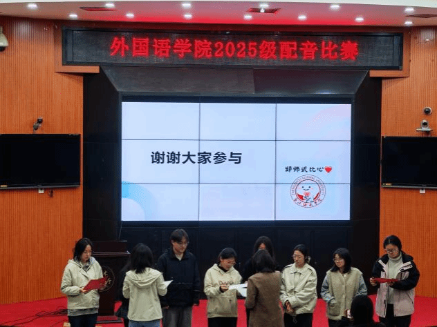 为丰富校园文化生活,激发学生外语学习热情,提升语言应用与跨文化表达能力,营造勤学善思、积极向上的外语学习氛围,3月24日,我校外国语学院2025级举办配音比赛。学院师生齐聚一堂,以声音为桥、以语言为媒,共同呈现一场兼具专业水准与青春活力的视听盛宴。