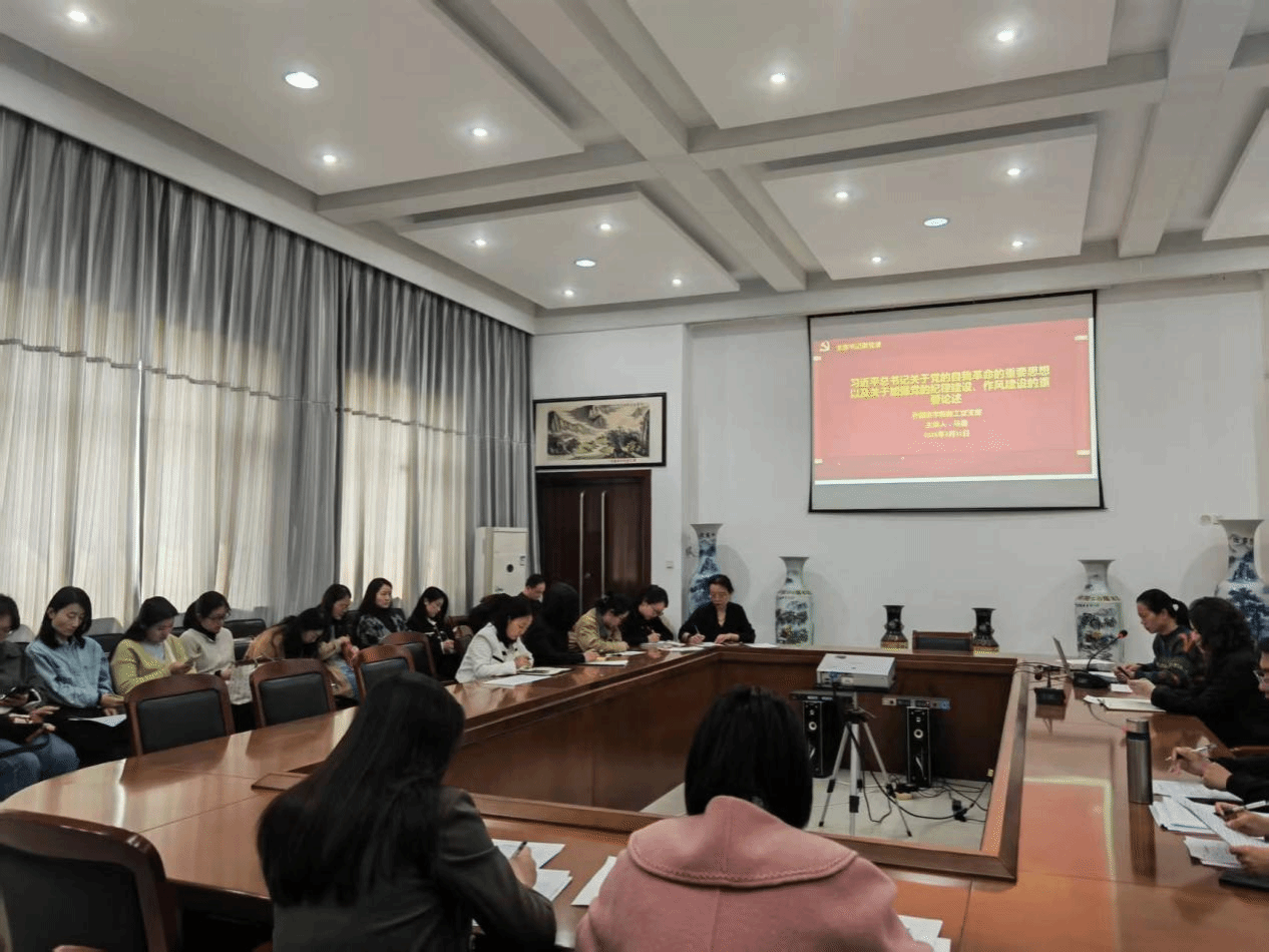 为深入学习贯彻习近平新时代中国特色社会主义思想,进一步巩固党纪学习教育成果,引导广大教工党员筑牢思想防线、严守纪律底线,3月31日下午,外国语学院教工党支部在文质楼B516会议室举行专题党课学习。本次党课由支部书记马鑫主讲,主题为“习近平总书记关于党的自我革命的重要思想以及关于加强党的纪律建设、作风建设的重要论述”,党支部全体党员参加学习。