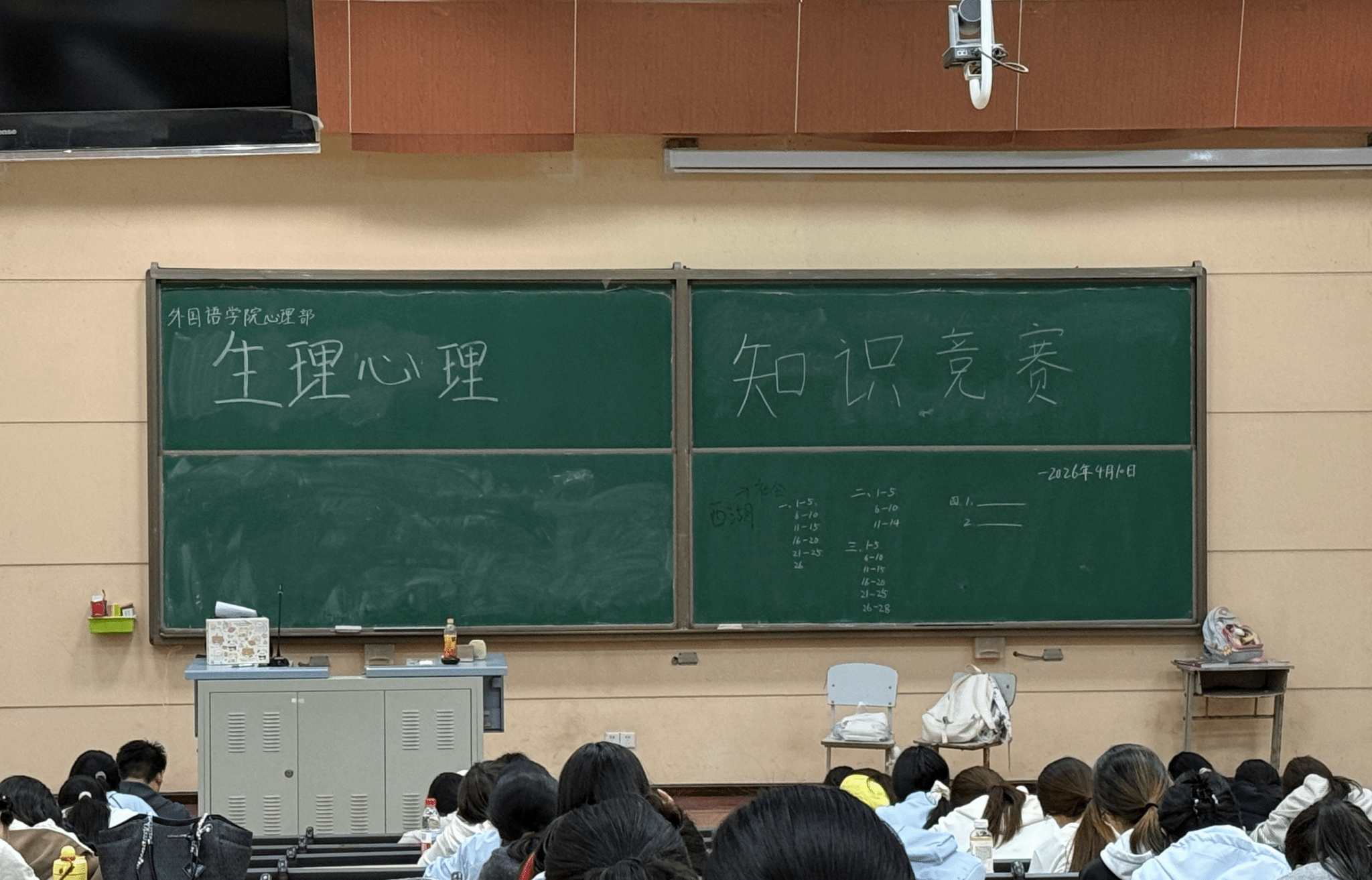 2026年4月10日中午12时40分,外国语学院在文汇楼A101成功举办生理心理健康知识竞答活动。本次活动由学院生理心理部精心组织,2025级全体学生踊跃参与,旨在以知识竞答为载体,向学生普及生理与心理健康核心知识,帮助学生熟练掌握身心保健实用技能,强化自我关怀与防护意识,助力学生以健康、积极的身心状态应对学业压力与成长挑战。