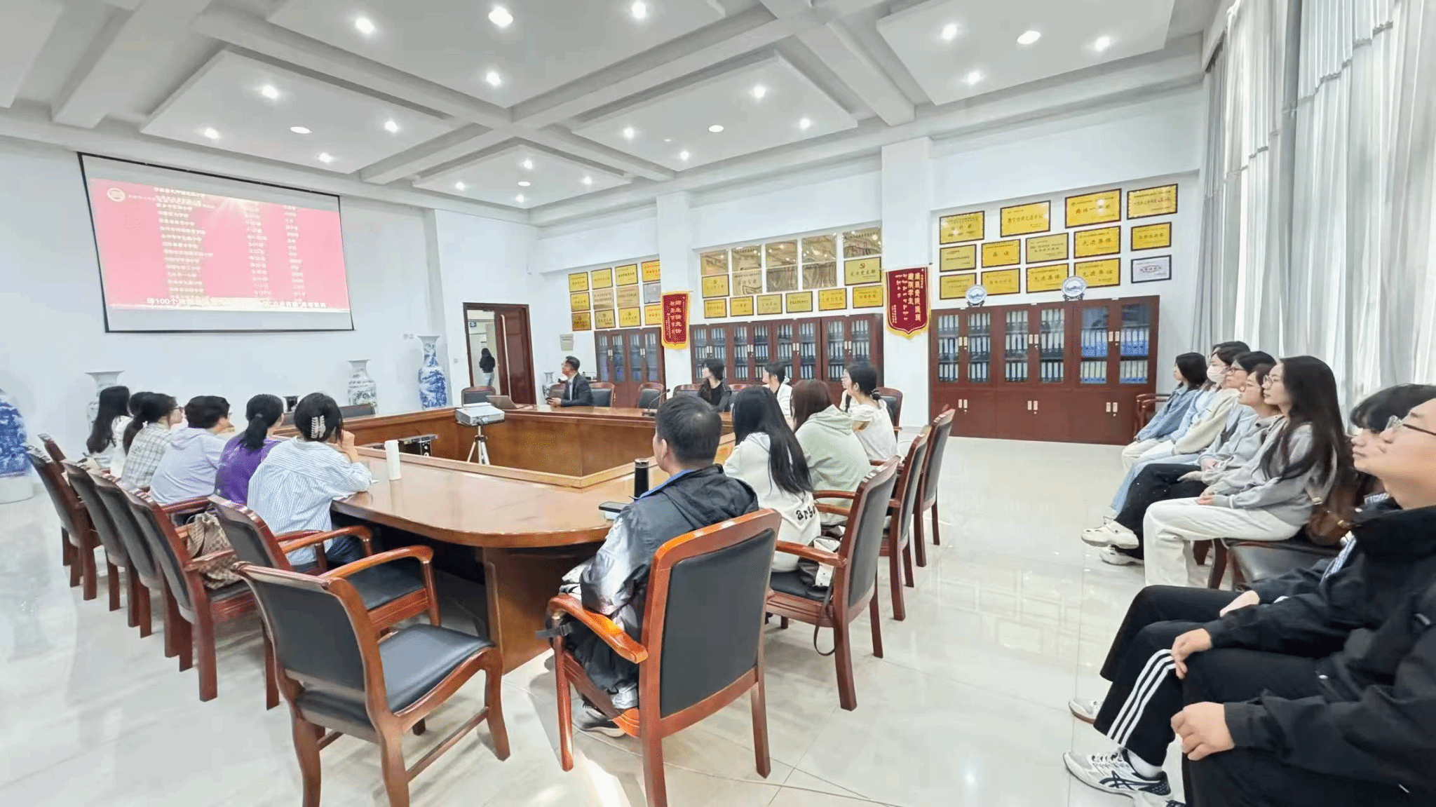 学院高度重视本次收看工作,采取“集中观看与分散观看相结合”的方式,在文质楼B516设立集中收看会场,组织B23英语1班学生及无授课任务教师集中观看,其余师生通过线上平台分散收看,实现了教学科研与收看学习两不误。
